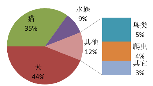 中國養(yǎng)寵種類占比為: