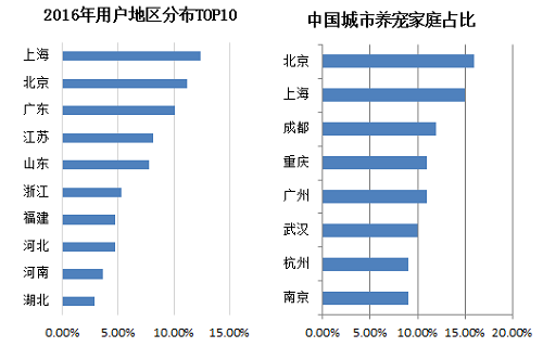 中國養(yǎng)寵用戶主要居住在沿海經(jīng)濟發(fā)達(dá)地區(qū)。