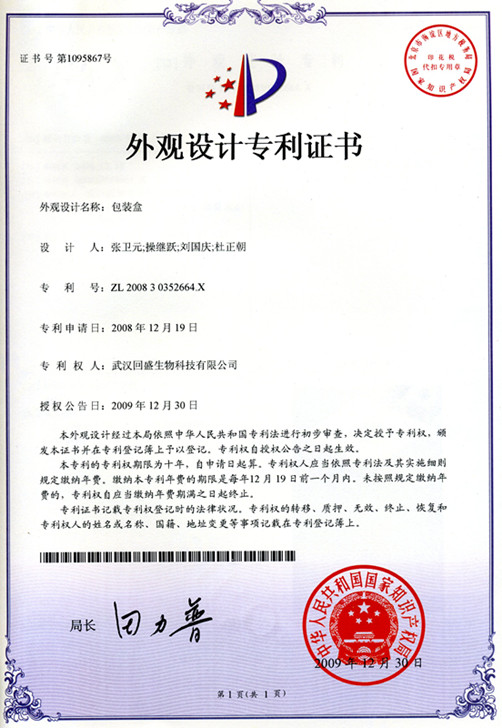 外觀設(shè)計專利證書(盒專利)